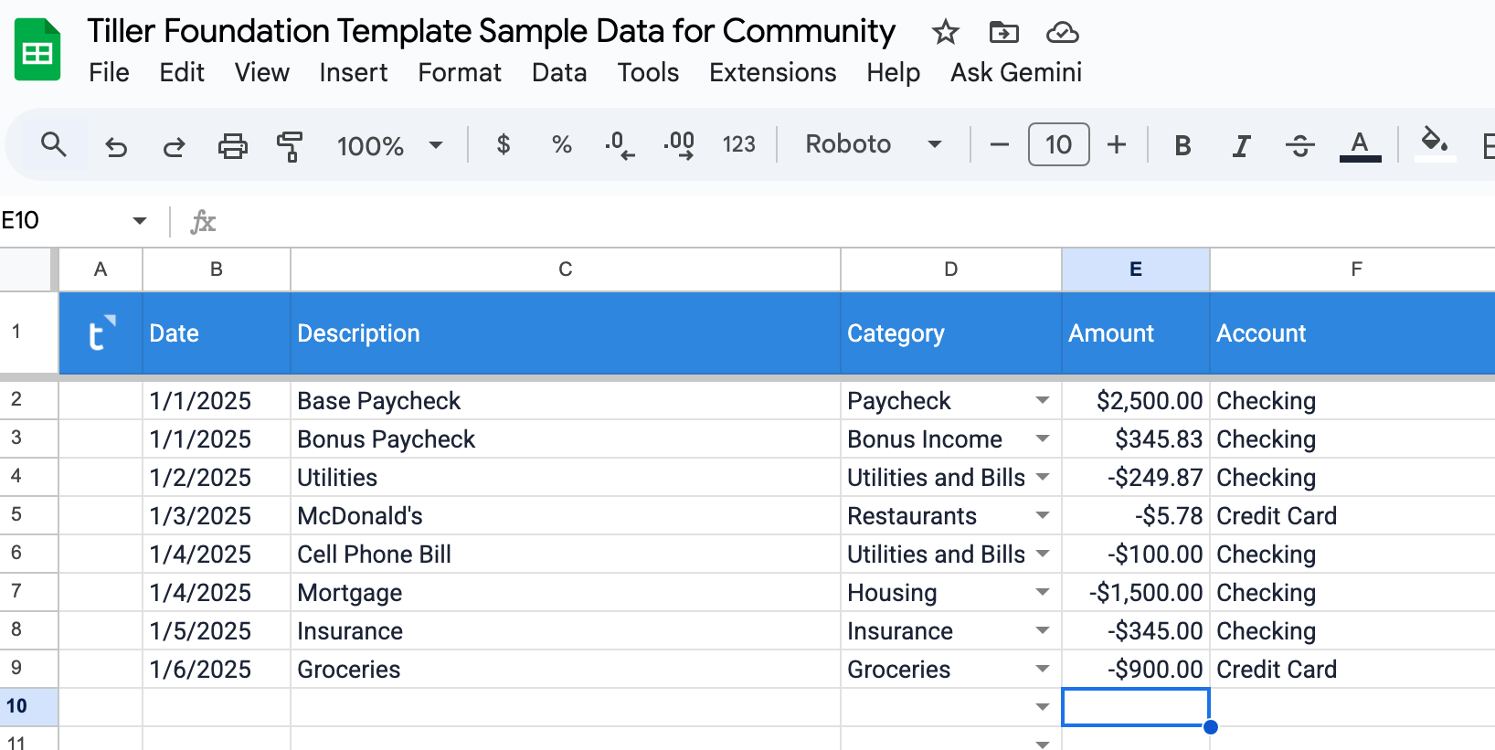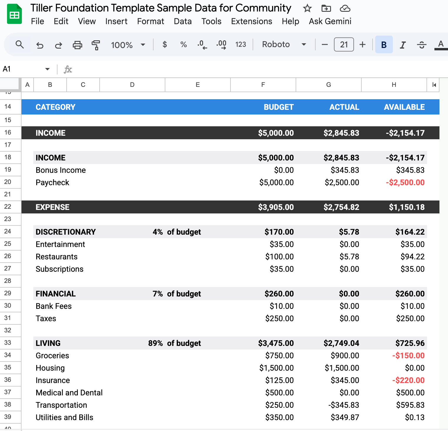 You don’t have to have your category budgets match your overall income. If you have extra cashflow, that’s great! One of the nice things about Tiller is that it can be super flexible and you get to decide exactly how you want to track your finances and spending.