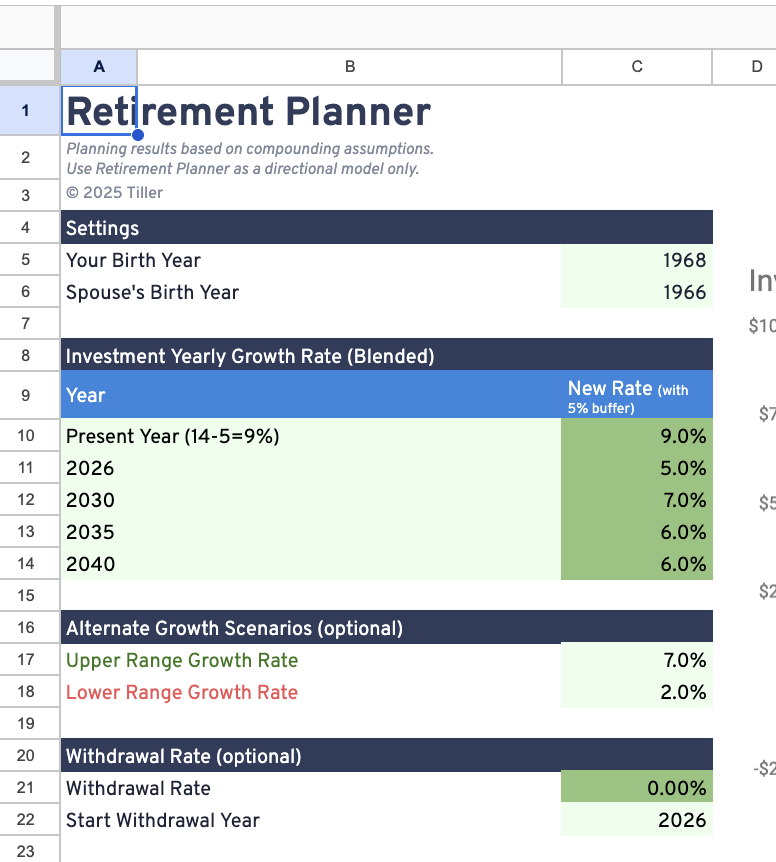Hello. On Retirement Planner it asks for forecasted ROR for investments. Should this be the real rate of return, net of inflation, or nominal rate? My retirement planner connects to Cash Flow sheet, which adjusts my expenses by inflation. Was not sure if I need to adjust ROR as well, or if that would be double counting. Thanks